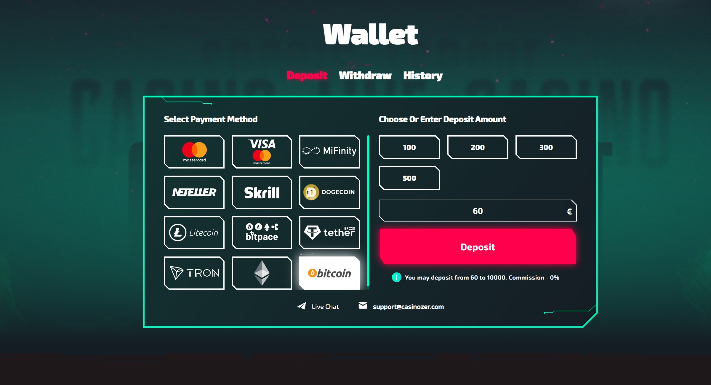 - Connectez-vous à Casinozer et effectuez un dépôt minimum de 20 euros.